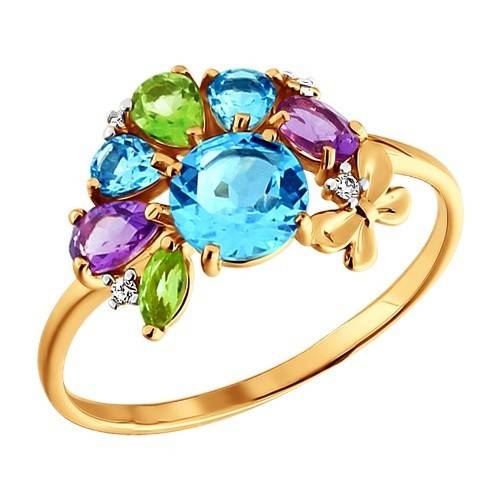 Серьги из красного золота с полудрагоценными камнями и фианитами (027811)