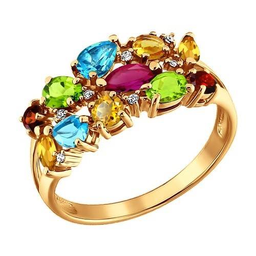 Серьги из красного золота с полудрагоценными камнями и фианитами (027861)