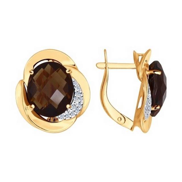Серьги из красного золота с раух-топазами и фианитами (027798)