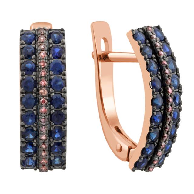 Серьги из красного золота с розовыми бриллиантами и сапфирами (035451)