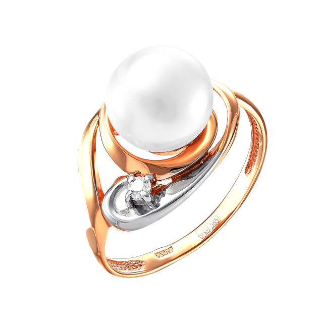Серьги из красного золота с жемчугом и фианитами (041476)