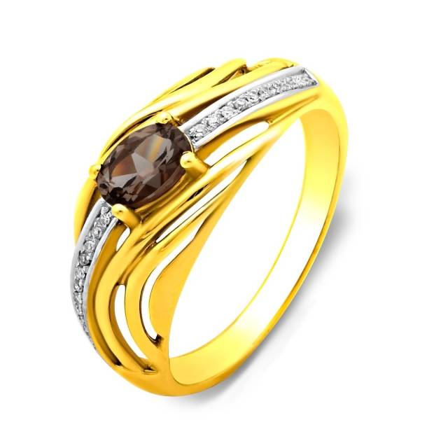 Серьги из жёлтого золота с бриллиантами и дымчатым кварцем (011473)
