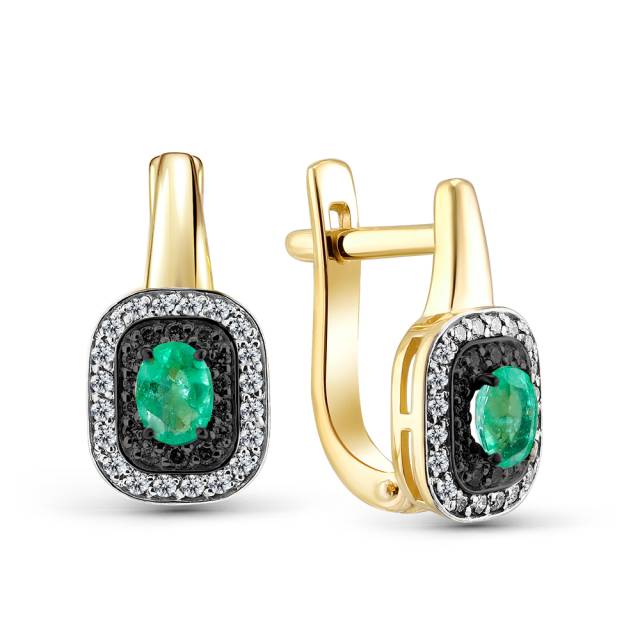 Серьги из жёлтого золота с бриллиантами и изумрудами (051493)
