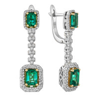 Серьги из жёлтого золота с бриллиантами и изумрудами (051825)