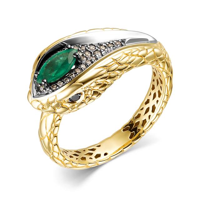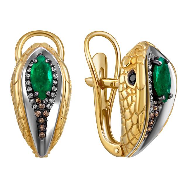 Серьги из жёлтого золота с бриллиантами и изумрудами (055182)