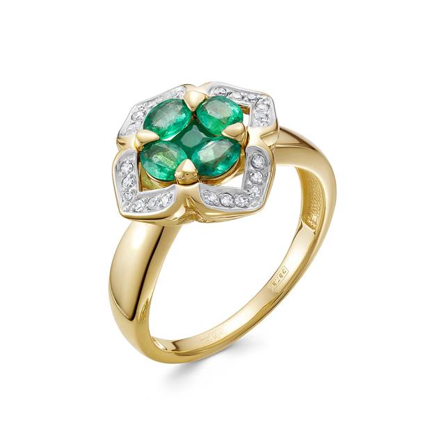 Серьги из жёлтого золота с бриллиантами и изумрудами (055272)