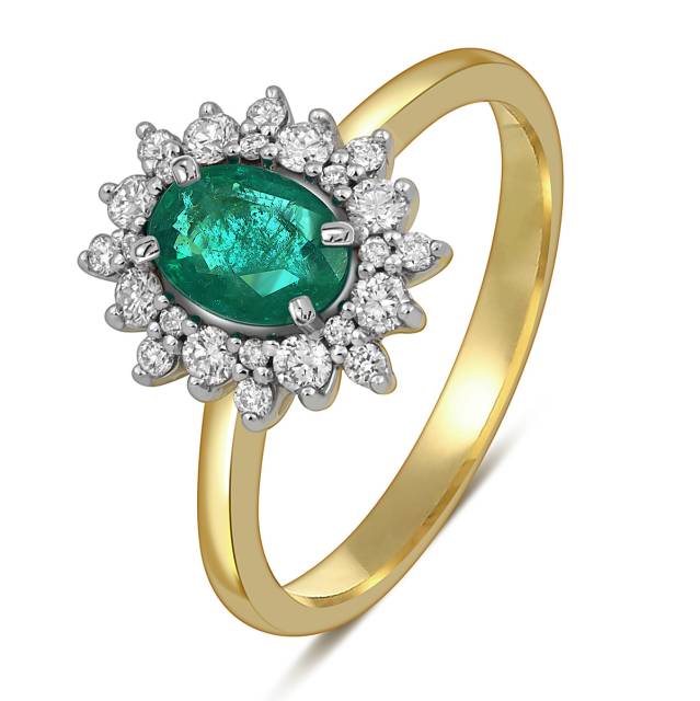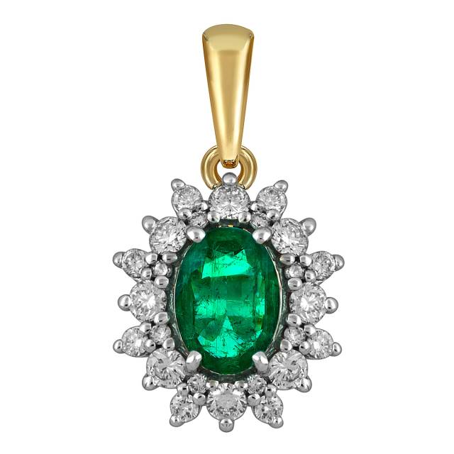 Серьги из жёлтого золота с бриллиантами и изумрудами (055523)