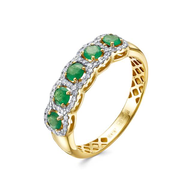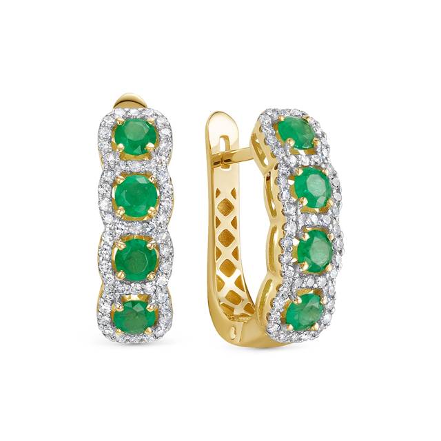 Серьги из жёлтого золота с бриллиантами и изумрудами (058853)