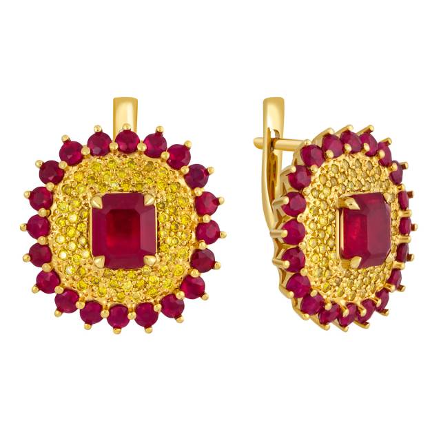 Серьги из жёлтого золота с бриллиантами и рубинами (040641)