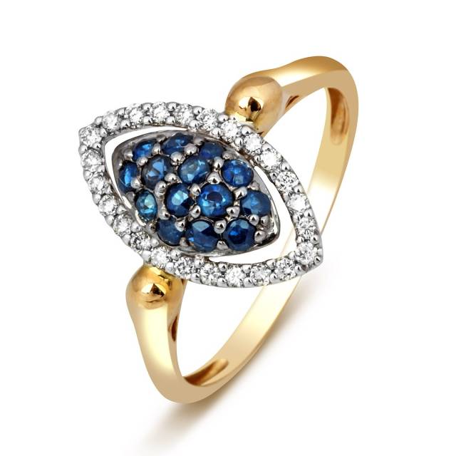 Кольцо из желтого золота с бриллиантами и сапфирами (001287)