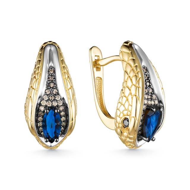 Серьги из жёлтого золота с бриллиантами и сапфирами (055794)