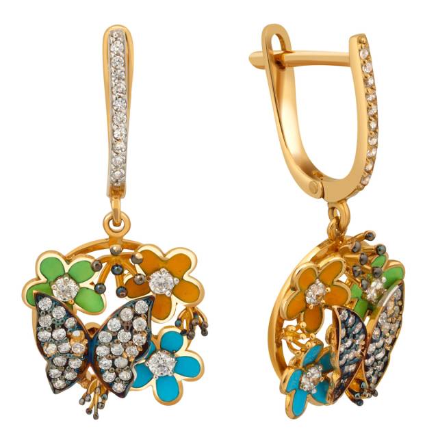 Серьги из жёлтого золота с цирконами и эмалью (012117)