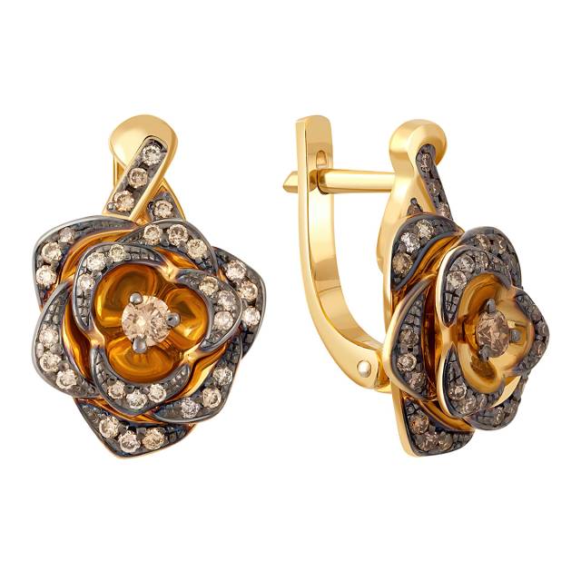 Серьги из жёлтого золота с коньячными бриллиантами (040304)