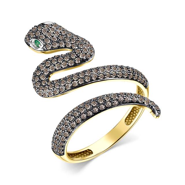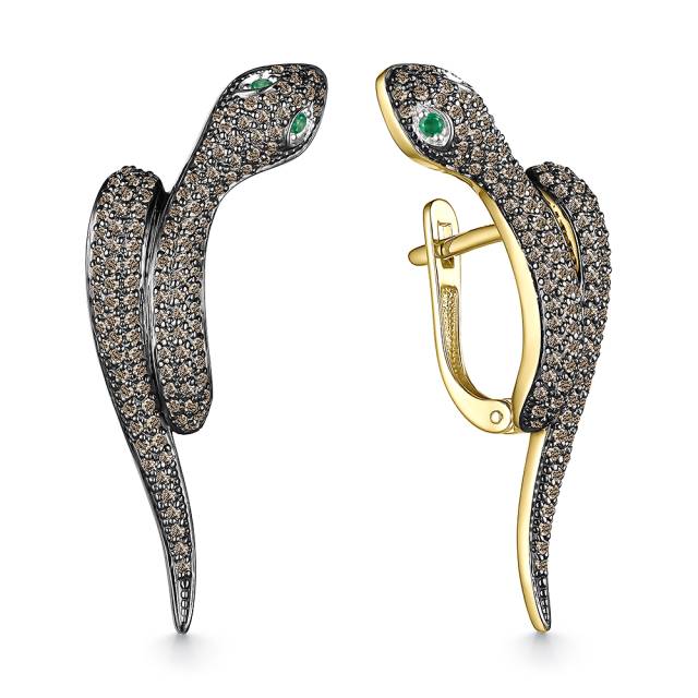 Серьги из жёлтого золота с коньячными бриллиантами и изумрудами (057659)