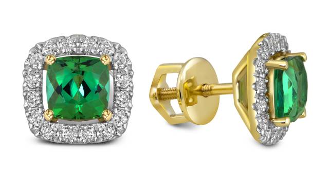 Серьги пусеты из жёлтого золота золота с бриллиантами и турмалинами (057501)