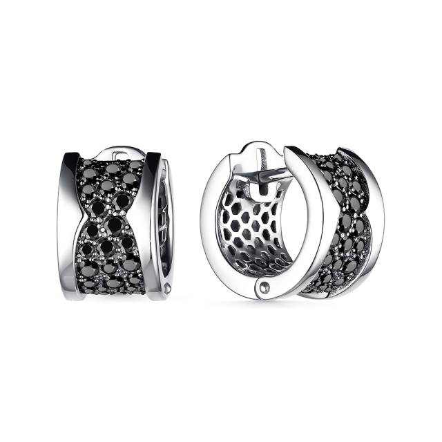 Серьги конго из белого золота с чёрными бриллиантами (057759)