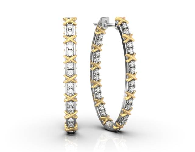 Серьги конго из комбинированного золота с бриллиантами (052993)