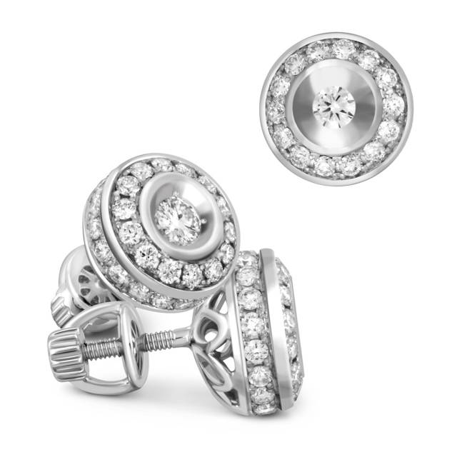 Серьги пусеты из белого золота с бриллиантами (039725)