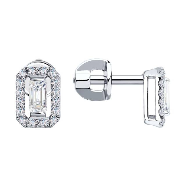 Серьги пусеты из белого золота с бриллиантами (047376)