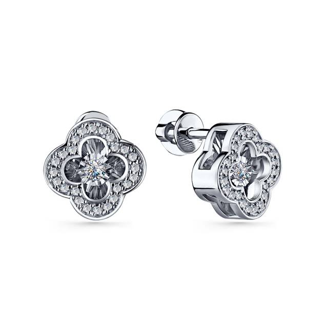Серьги пусеты из белого золота с бриллиантами (060001)