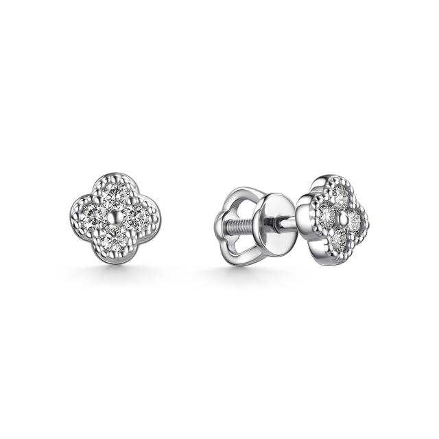 Серьги пусеты из белого золота с бриллиантами (060487)