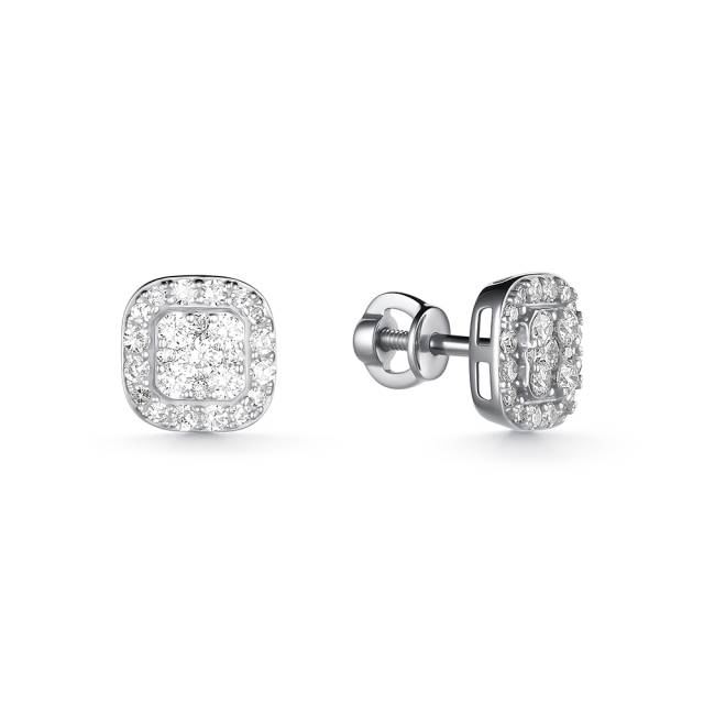 Серьги пусеты из белого золота с бриллиантами (060581)