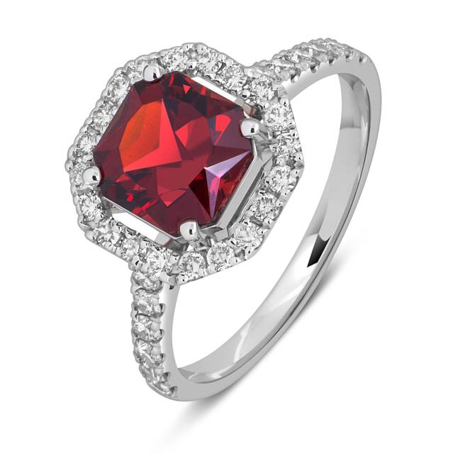 Серьги пусеты из белого золота с бриллиантами и гранатами (051718)