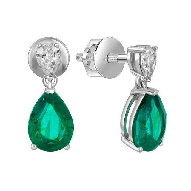 Серьги пусеты из белого золота с бриллиантами и изумрудами (051818)