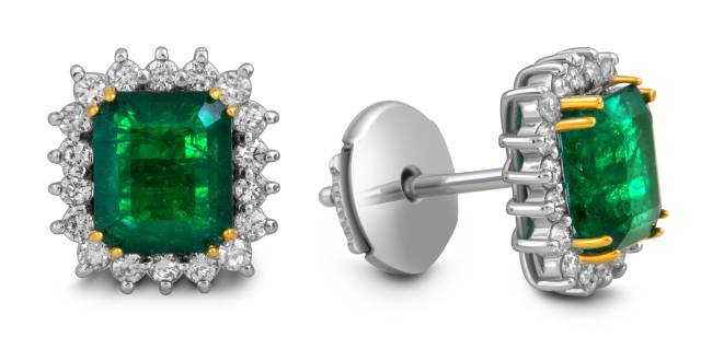 Серьги пусеты из белого золота с бриллиантами и изумрудами (055077)