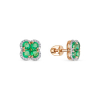 Серьги пусеты из белого золота с бриллиантами и изумрудами (055233)