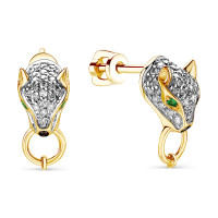 Серьги пусеты из белого золота с бриллиантами и изумрудами (059854)