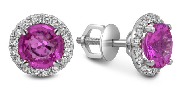 Серьги пусеты из белого золота с бриллиантами и розовыми сапфирами (052503)