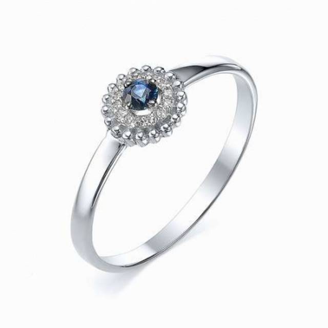 Кольцо из белого золота с бриллиантами и сапфиром (035577)