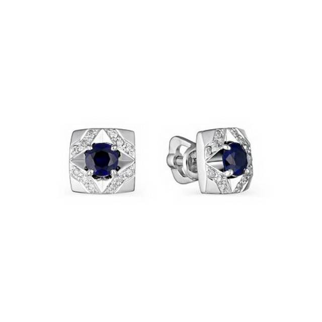Серьги пусеты из белого золота с бриллиантами и сапфирами (038790)