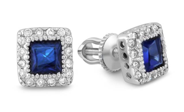 Серьги пусеты из белого золота с бриллиантами и сапфирами (047806)