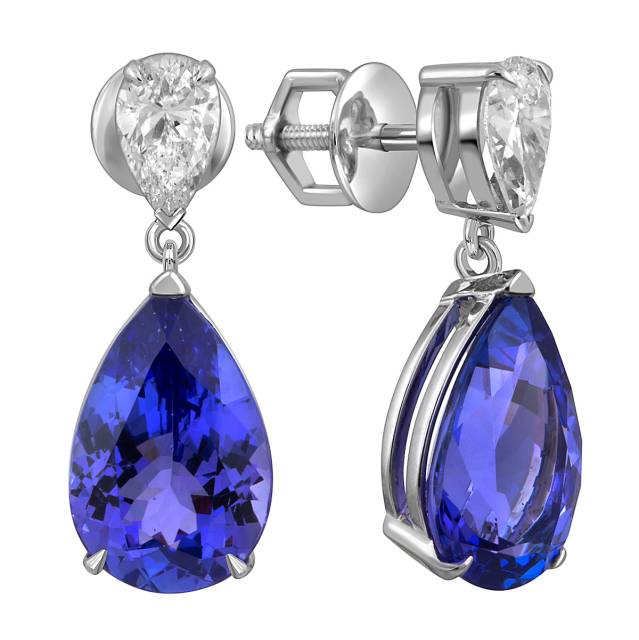 Серьги пусеты из белого золота с бриллиантами и танзанитами (054355)