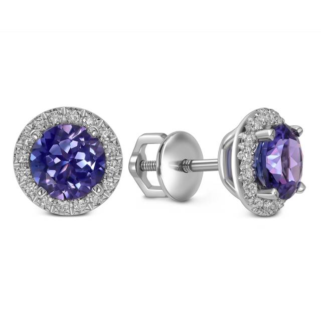 Серьги пусеты из белого золота с бриллиантами и танзанитами (060613)