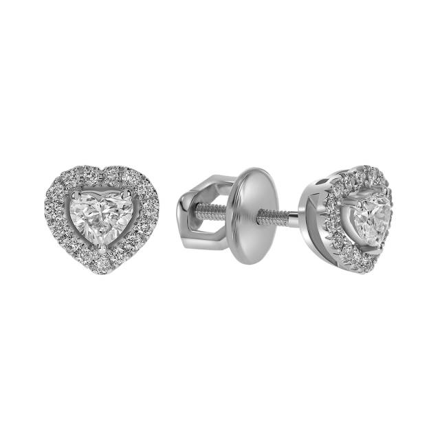 Серьги пусеты из белого золота с бриллиантами "Сердце" (061638)