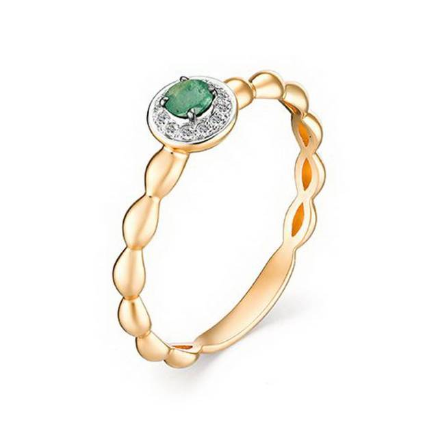 Серьги пусеты из красного золота с бриллиантами и изумрудами (033565)