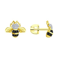 Серьги пусеты из красного золота с бриллиантами "Пчёлы" (045249)