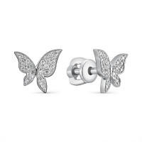 Серьги пусеты из жёлого золота с бриллиантами "Бабочки" (058432)