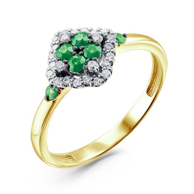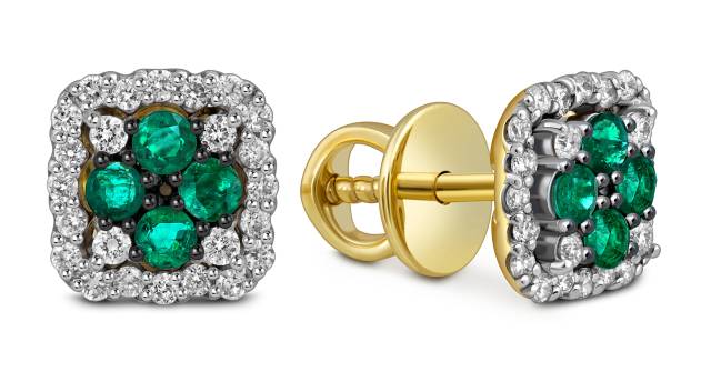 Серьги пусеты из жёлого золота с бриллиантами и изумрудами (058787)