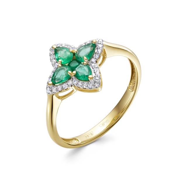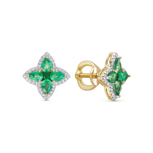 Серьги пусеты из жёлтого золота с бриллиантами и изумрудами (055683)