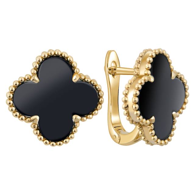 Серьги пусеты из жёлтого золота с ониксами (057710)