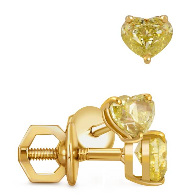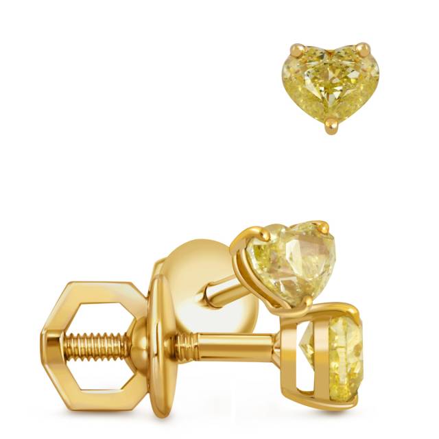 Серьги пусеты из жёлтого золота с жёлтыми бриллиантами Сердце (052076)