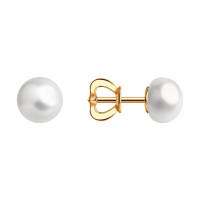 Серьги пусеты из жёлтого золота с жемугом (050914)