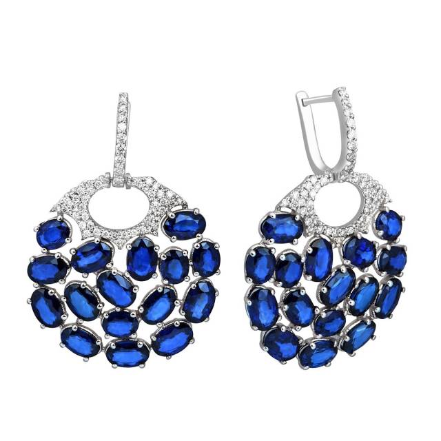 Серьги с сапфирами и бриллиантами из белого золота (009655)
