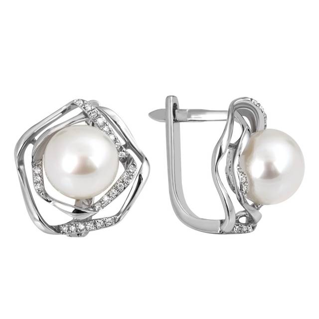 Серьги с жемчугом и бриллиантами (012622)