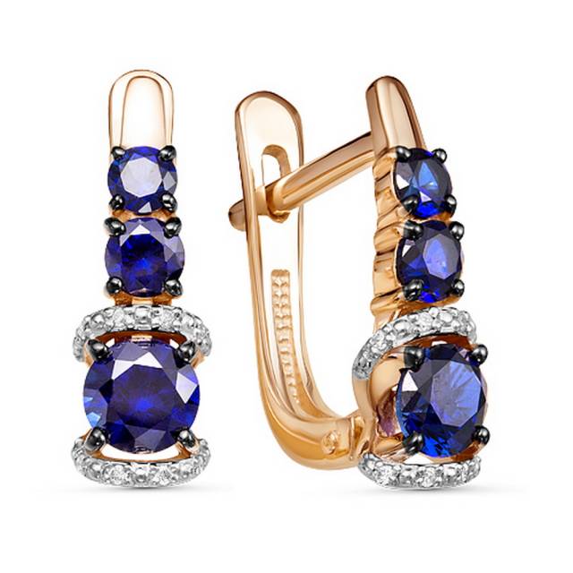 Кольцо из красного золота с бриллиантами и сапфирами (050013)